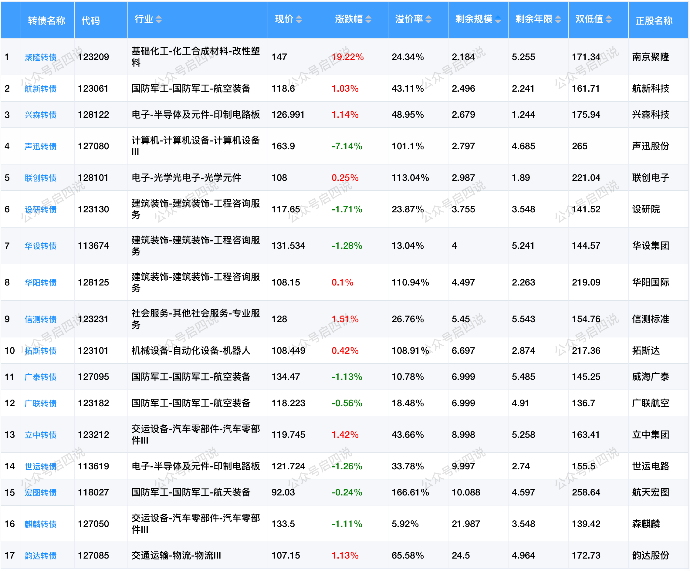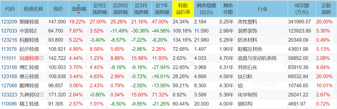 今天持仓命中了19cm的聚隆转债,正股20cm,转债大涨19.22%。