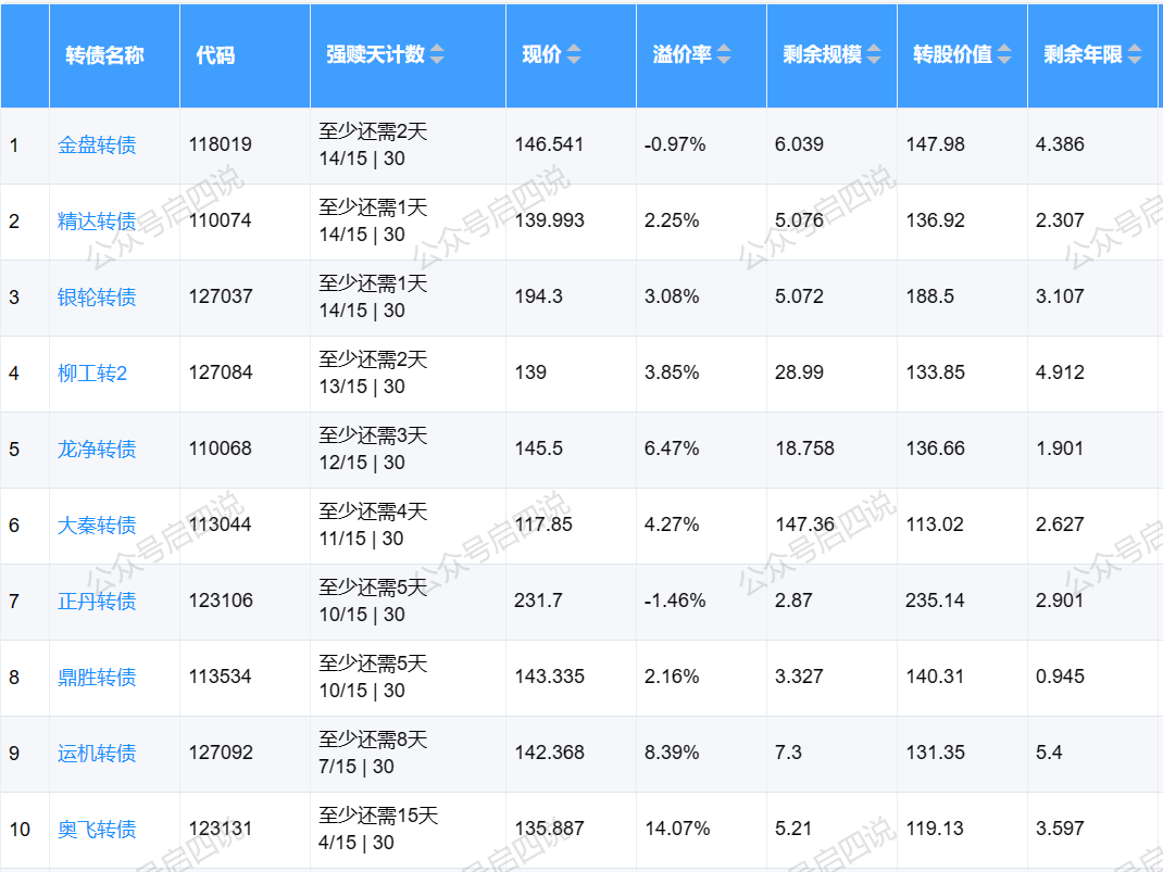 下面这些转债,要注意强赎杀溢价风险,尤其是溢价率在5%以上的。