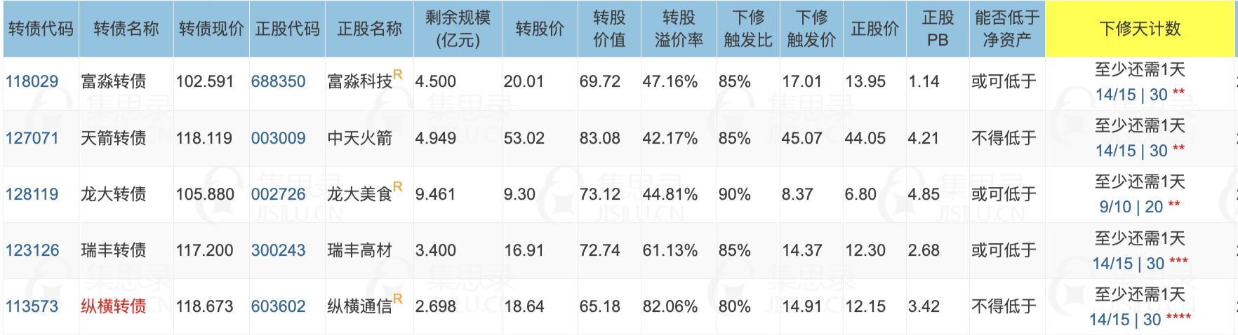 2、明天有5只转债最快可满足下修条件,个人认为,龙大转债下修的概率大一些,若提议下修,价格有望来到112-114元。