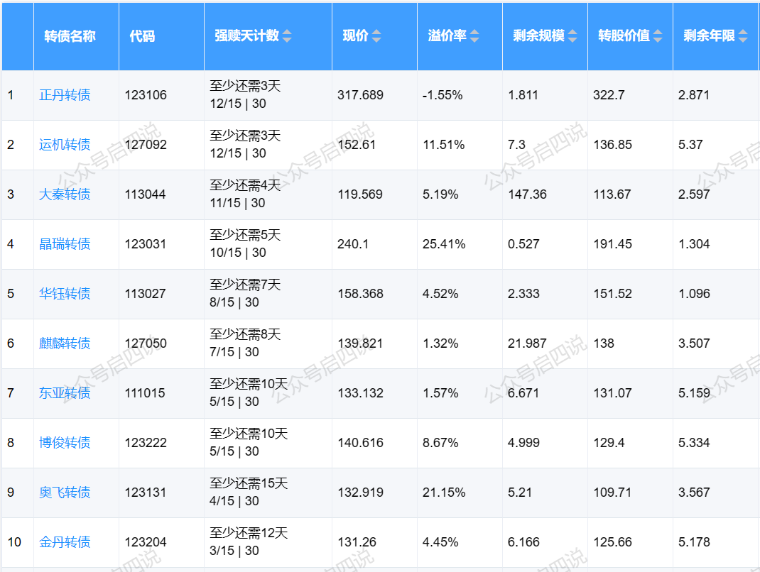 下面这些转债,要注意强赎杀溢价风险,尤其是溢价率在5%以上的。