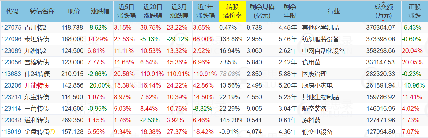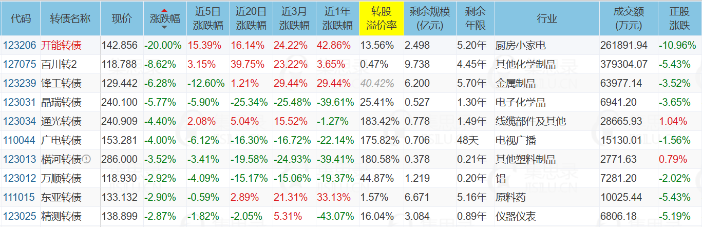 2、跌幅榜中的开能转债、百川转2则是前两天的热门概念债。市场近期风格轮动超级快,基本是每天一个新概念轮流炒作,持续性很差,这类债只可低吸,不适合追高。