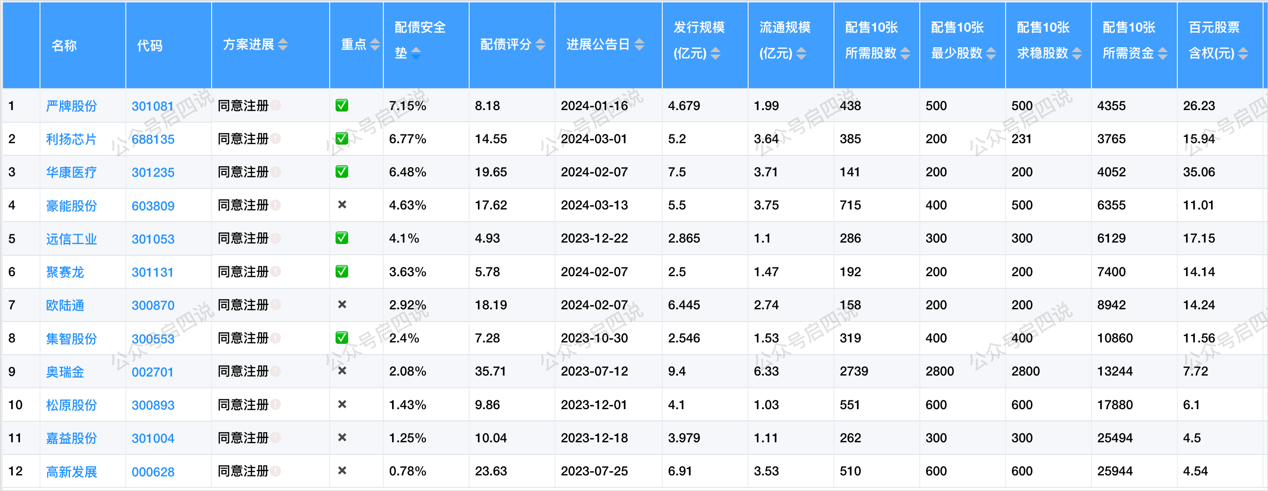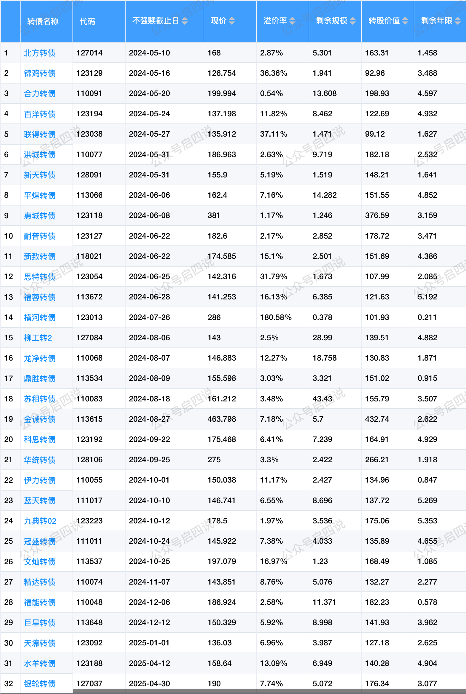 当前同意注册的转债中,不考虑炒妖的情况下,安全垫从高到低排序为: