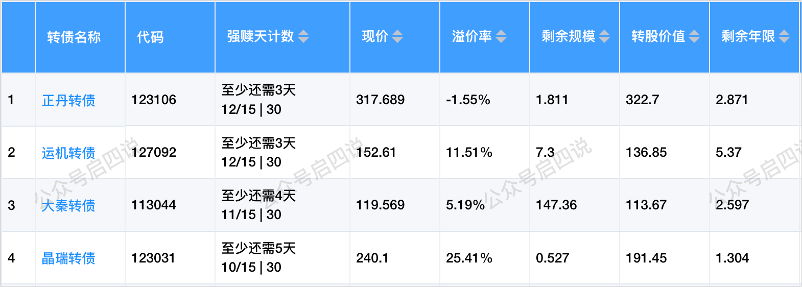 运机转债、晶瑞转债,需要注意强赎杀溢价风险。
