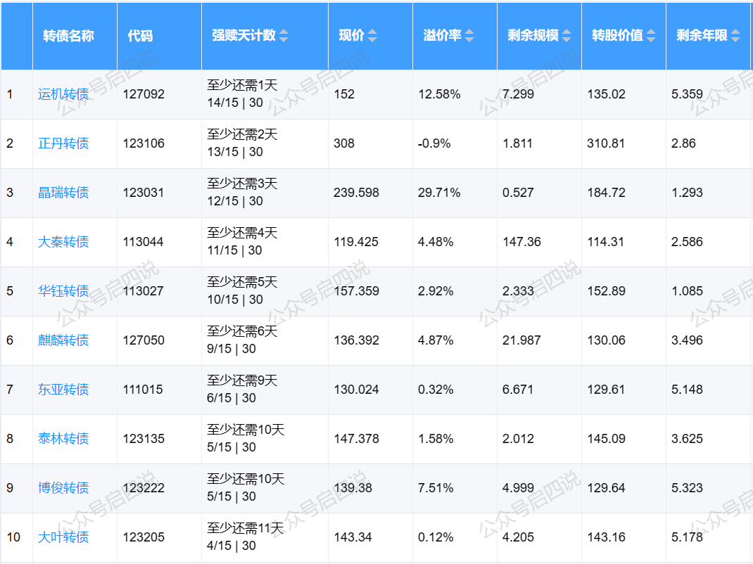运机转债明天将满足强赎条件,强赎杀溢价风险很大。
