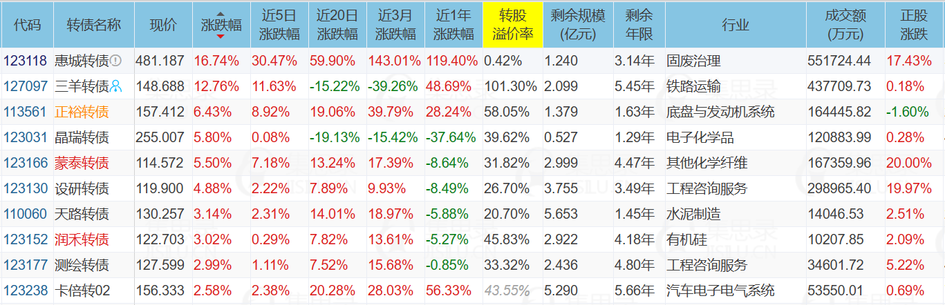 2、晶瑞转债,明天将满足强赎条件,溢价率高达39.82%,虽然它已经有过6次不强赎历史了,但是这个溢价一旦强赎,溢价将会迅速收敛到0%附近,持有的话会爆亏,奉劝读者不要去博弈不强赎,持有的话也应该卖出观望。