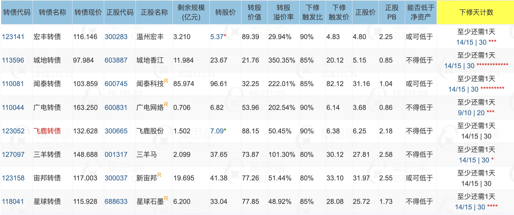 3、明天将有8只转债最快可满足下修条件,其中星球转债、城地转债的下修动机更强一些。