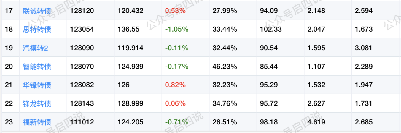 下面是我筛选出的一些较活跃,比较适合做网格的可转债,按照转债年化波动率从高到低排序: