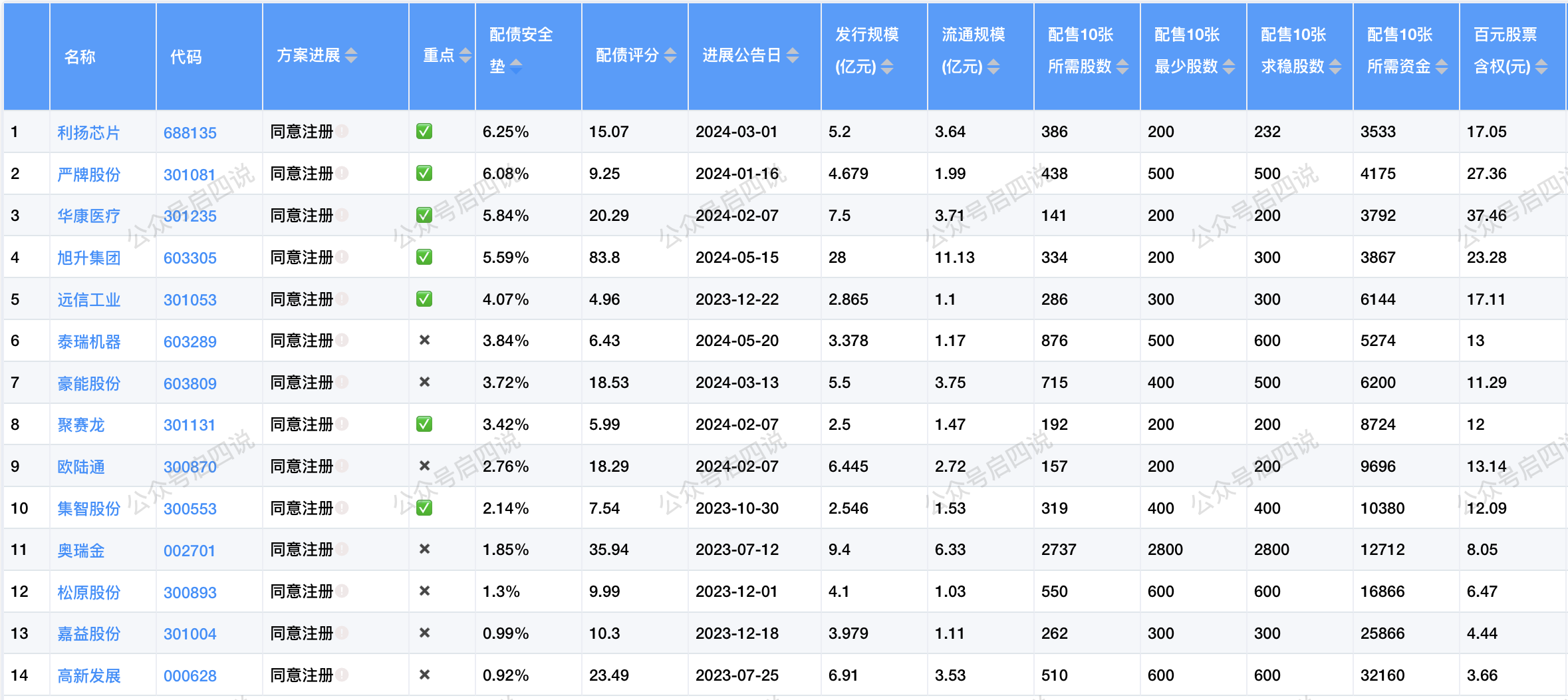 当前同意注册的转债中,不考虑炒妖的情况下,安全垫从高到低排序为: