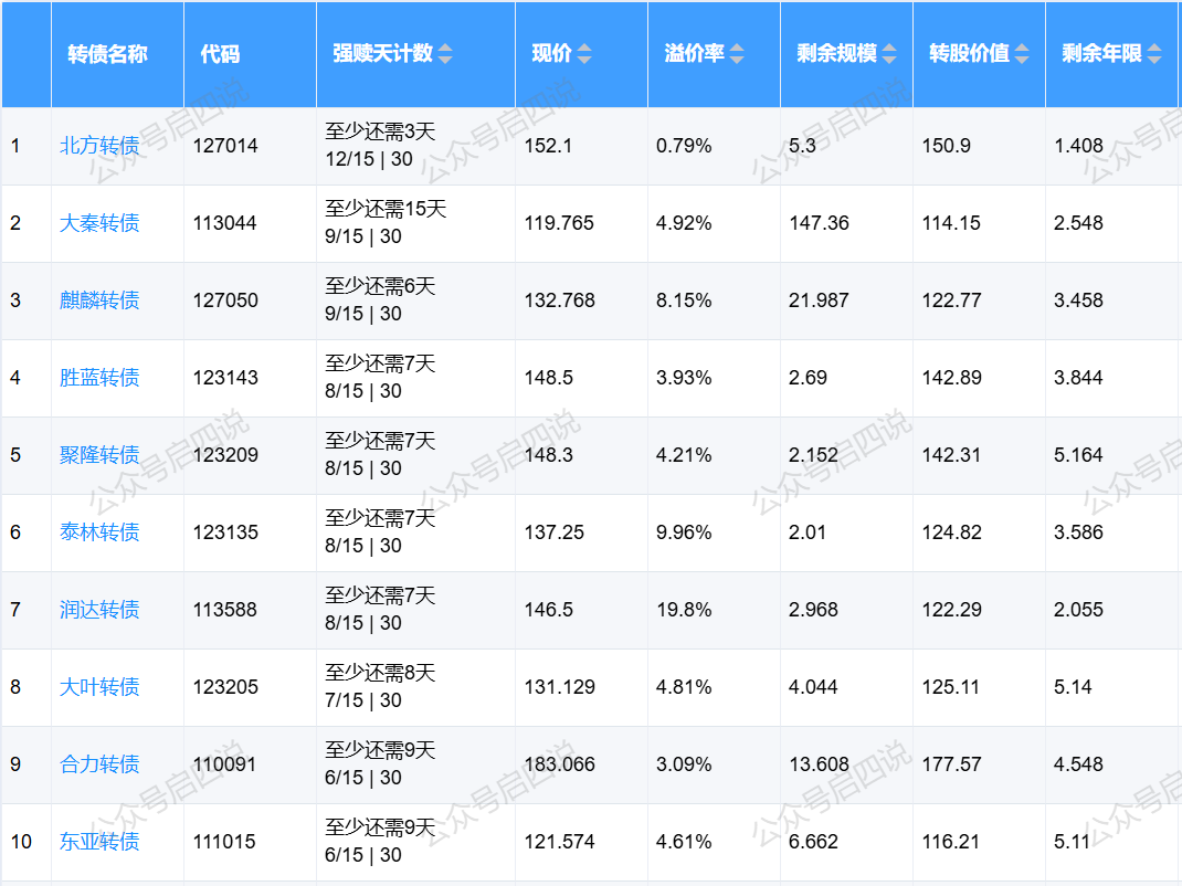 下面这些转债,要注意强赎杀溢价风险,尤其是溢价率在5%以上的。