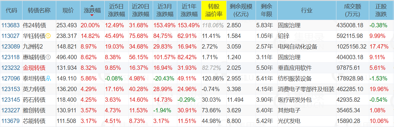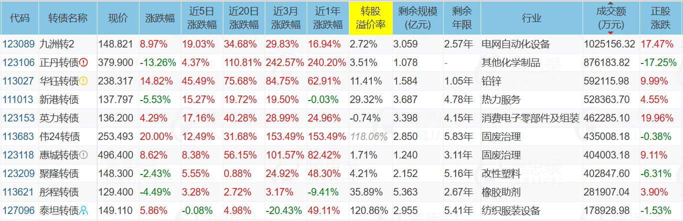 其中电力板块是受电力市场体制改革的消息刺激,代表债:九洲转2、芯能转债。