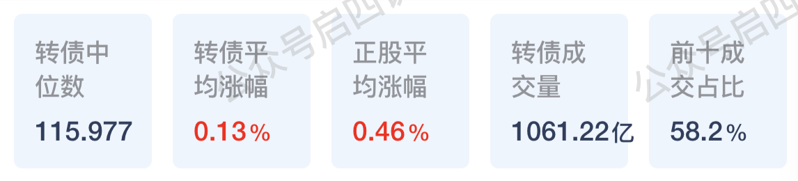 下面这张图是今天的转债中位数、涨幅、成交量等数据。
