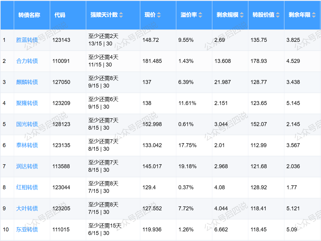 下面这些转债,要注意强赎杀溢价风险,尤其是溢价率在5%以上的。
