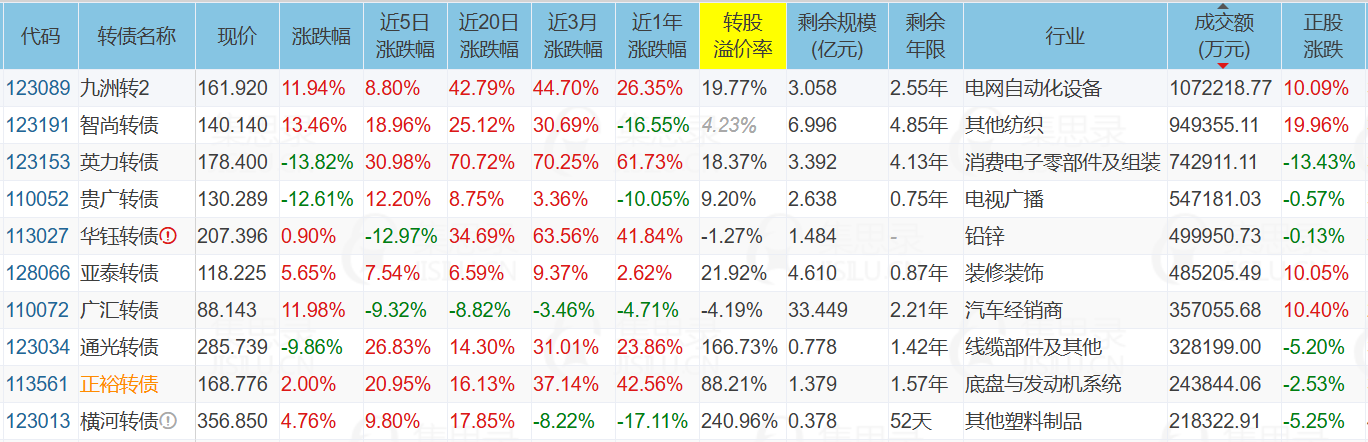 1、涨幅榜前十