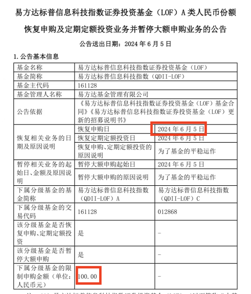 新的基金套利机会来了:**标普信息科技LOF(161128),**今晚公告从明天起开始限购100元。