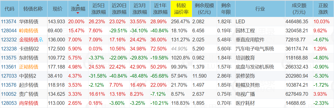 股债涨幅偏离是妖债的标配,近前的海波转债、正裕转债、中旗转债均有此特征。