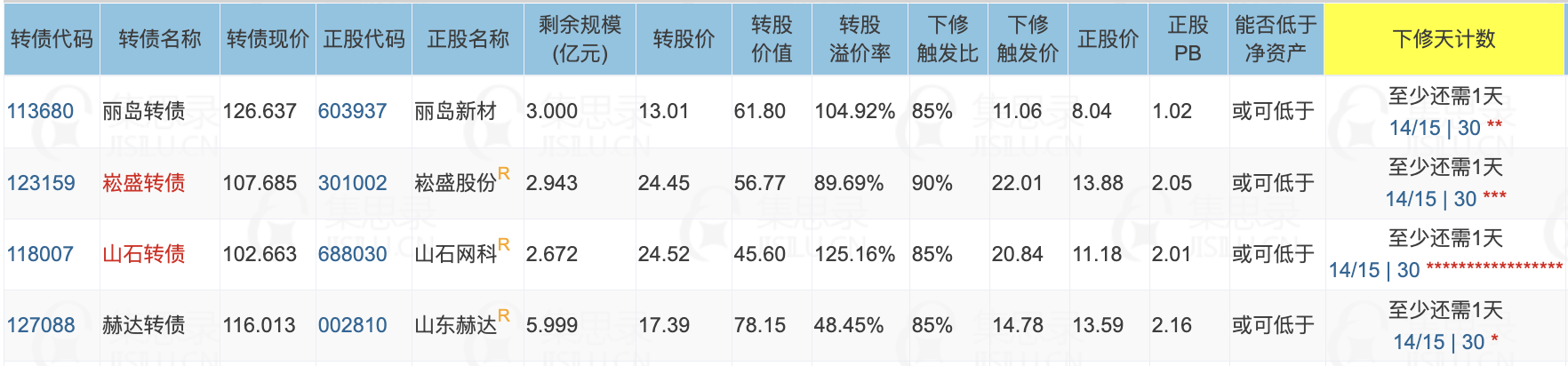 明天将有4只转债满足下修条件,其中赫达转债的下修动机更强一些。