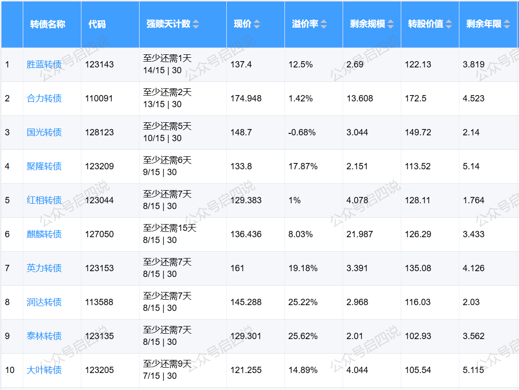 下面这些转债,要注意强赎杀溢价风险,尤其是溢价率在5%以上的。