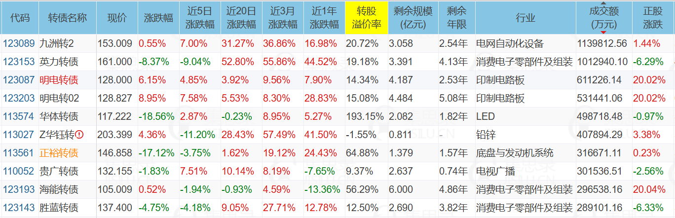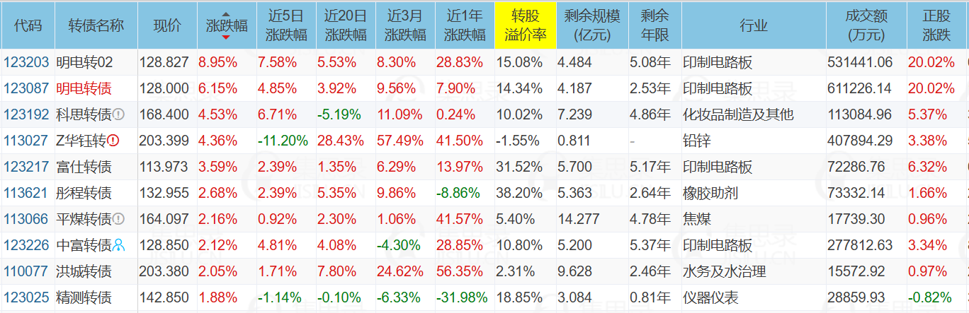 明电转债、明电转02、富仕转债、中富转债、景23转债、兴森转债、世运转债、超声转债、华正转债、崇达转2、宏丰转债、福22转债