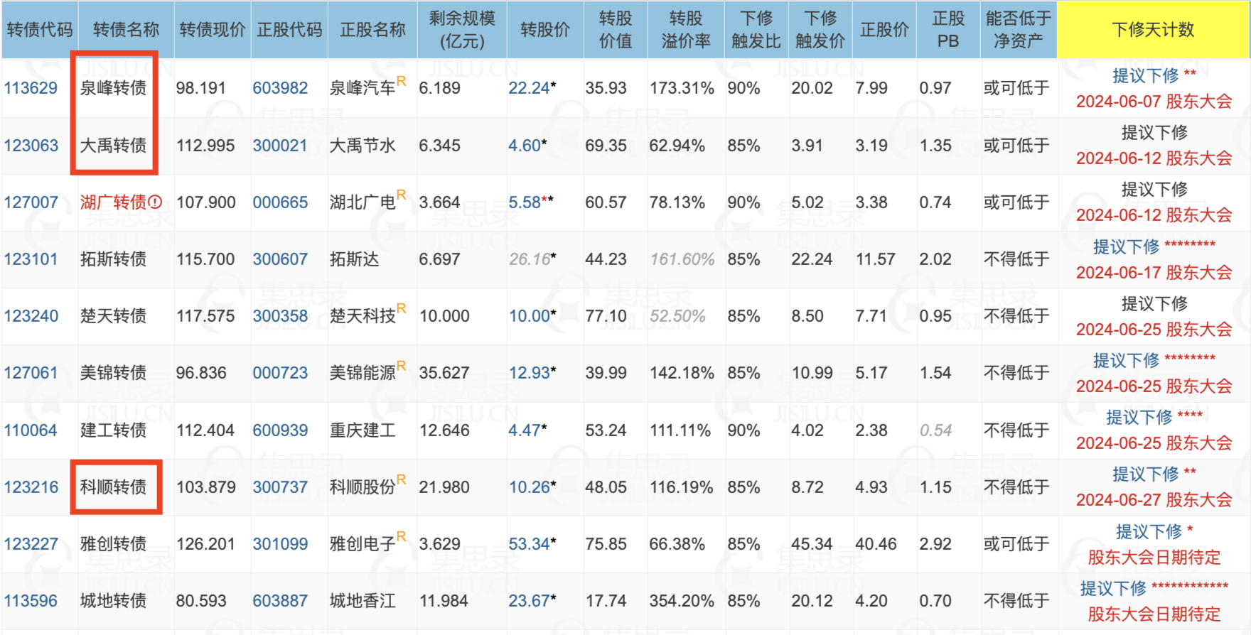 6月7日泉峰转债,6月12日大禹转债、湖广转债,6月27日科顺转债将召开股东下修大会,这几只转债我个人认为都是明显低估的。