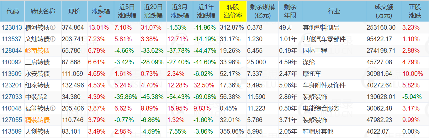 1、涨幅榜前十