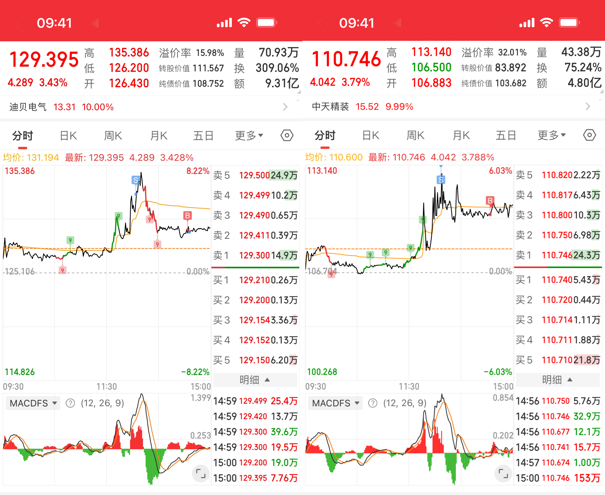 今天又吃到了双黄蛋——迪贝转债、精装转债。盘中冲高减仓,尾盘又接了回来。