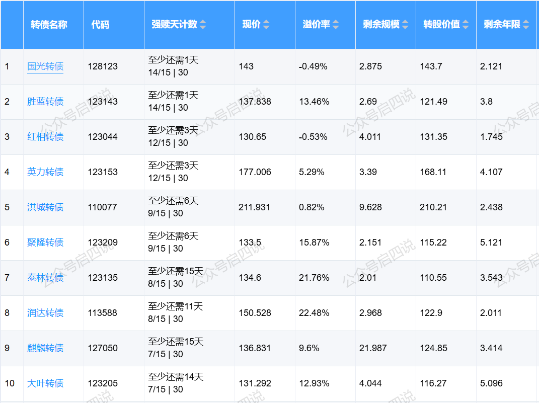下面这些转债,要注意强赎杀溢价风险,尤其是溢价率在5%以上的。