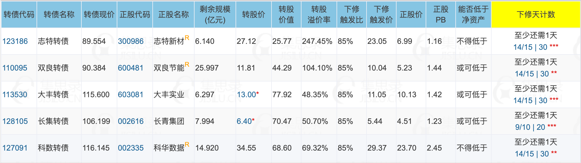3、明天最快有4只转债将满足下修条件(除去长集转债),个人认为科数转债、双良转债的下修动机较强。