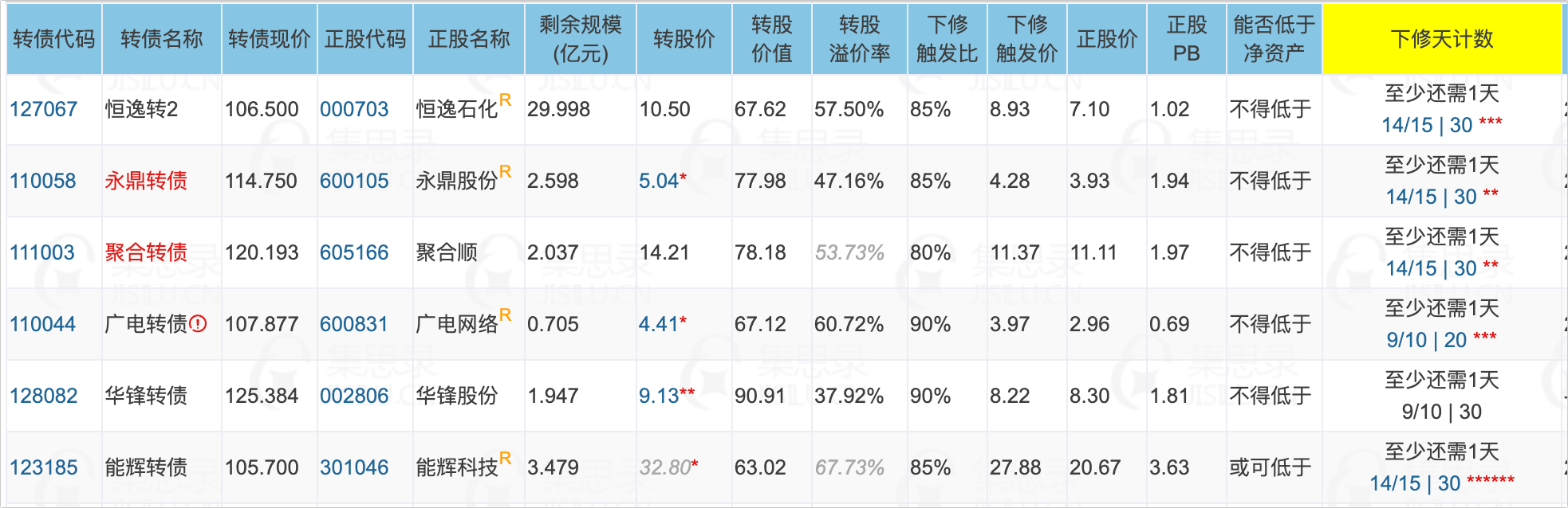 3、明天又有10只转债最快可满足下修条件,其中永鼎转债下修动机相对较强。