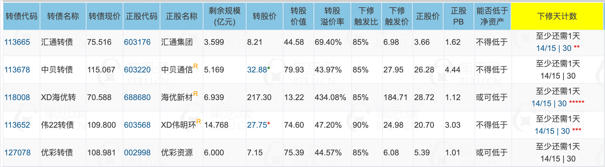 3、明天将有5只转债满足下修条件,到期时间都比较久,下修动机不强。