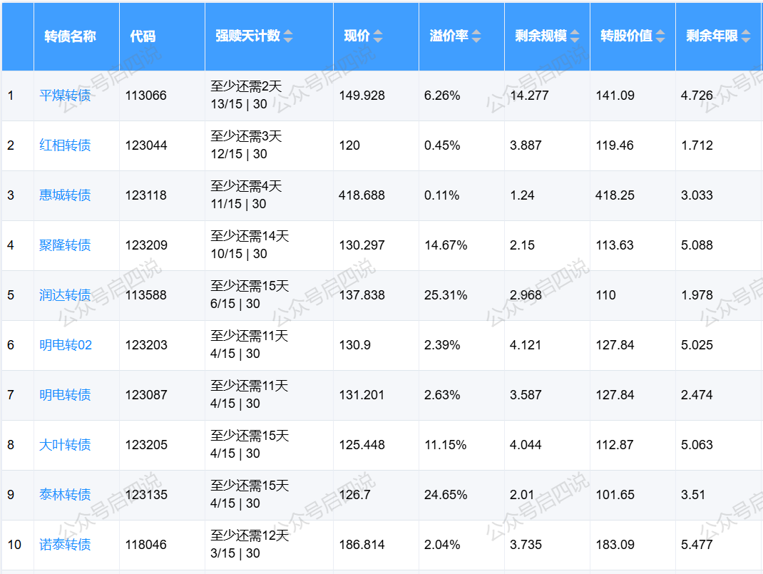 下面这些转债,要注意强赎杀溢价风险,尤其是溢价率在5%以上的。