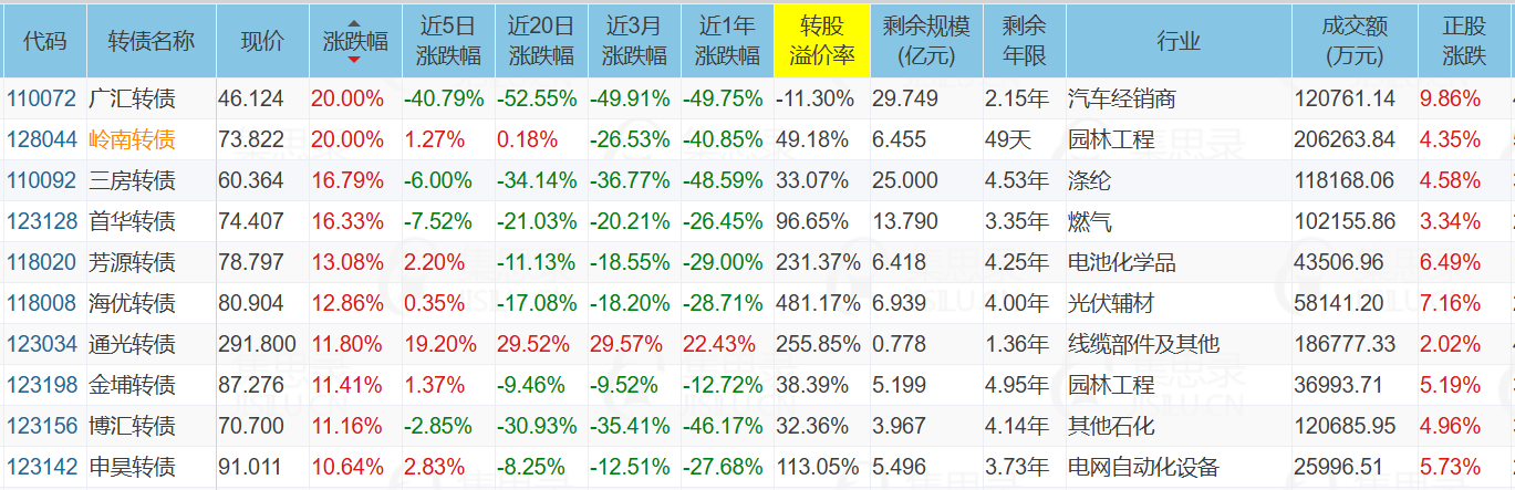 很多转债之前都是无脑乱跌,跌破100就继续加速下跌,现在在三房、广汇、岭南、山鹰、首华等转债的带动下,开始集中反攻。