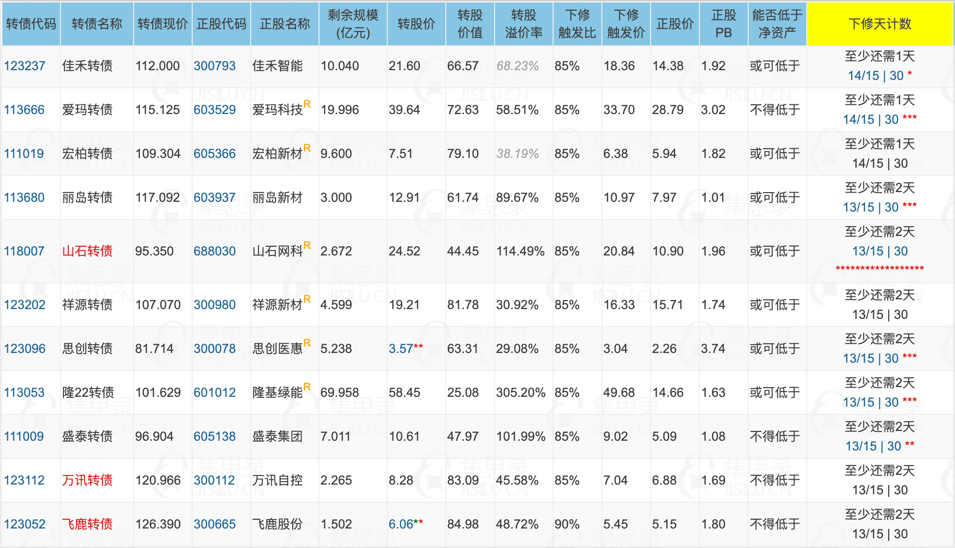 3、未来2天将有11只转债最快可满足下修条件,其中宏柏转债、思创转债、祥源转债、丽岛转债等下修动机较强。