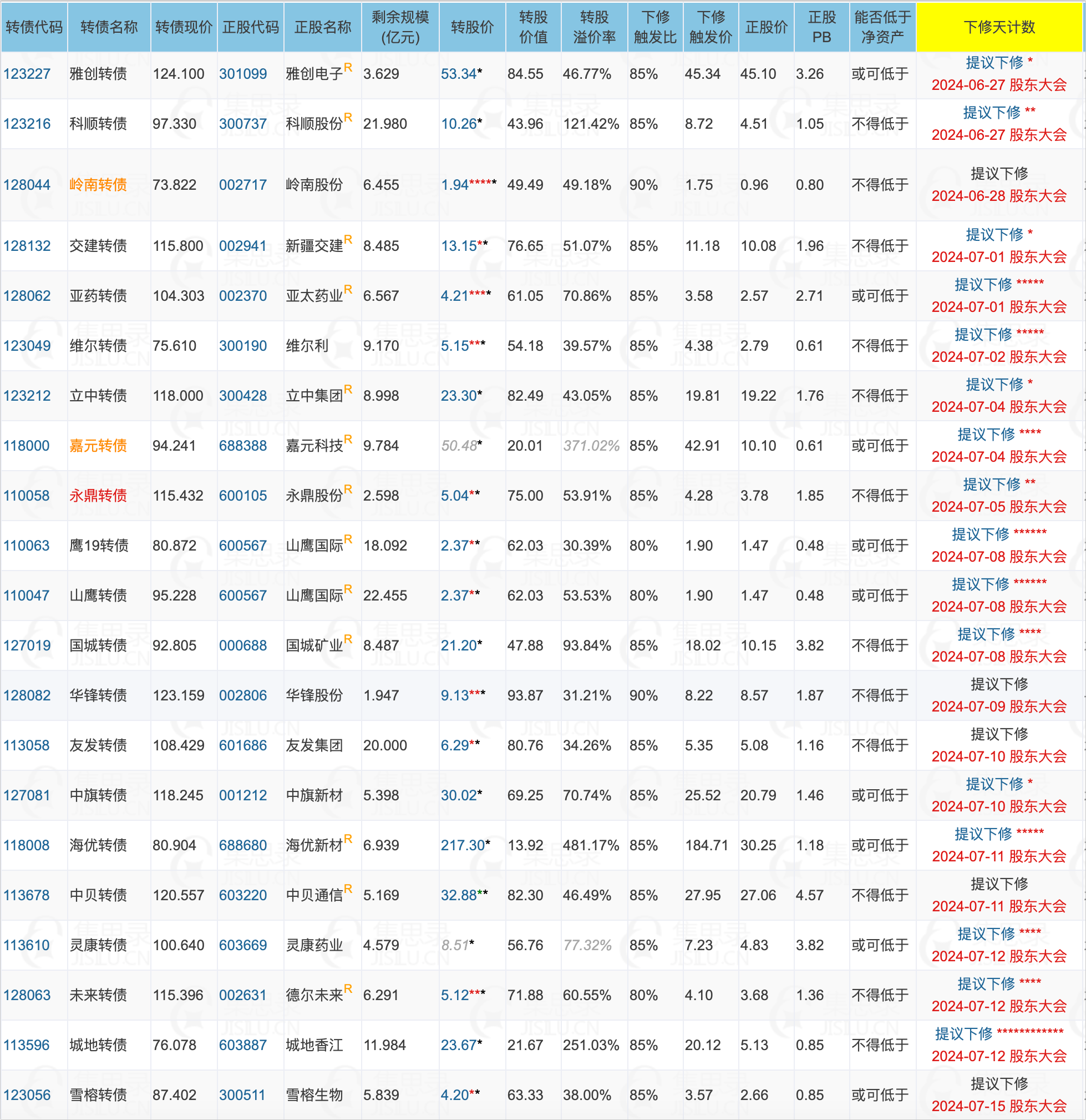 2、在已经提议下修的转债中寻找机会,我选择了中旗转债和鹰19转债。