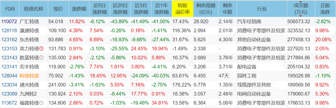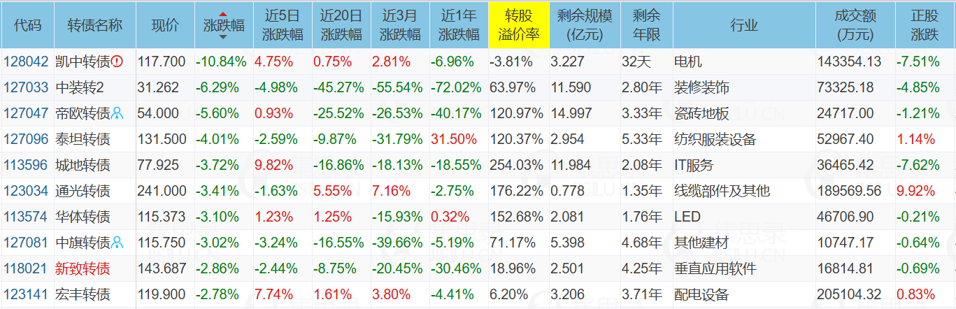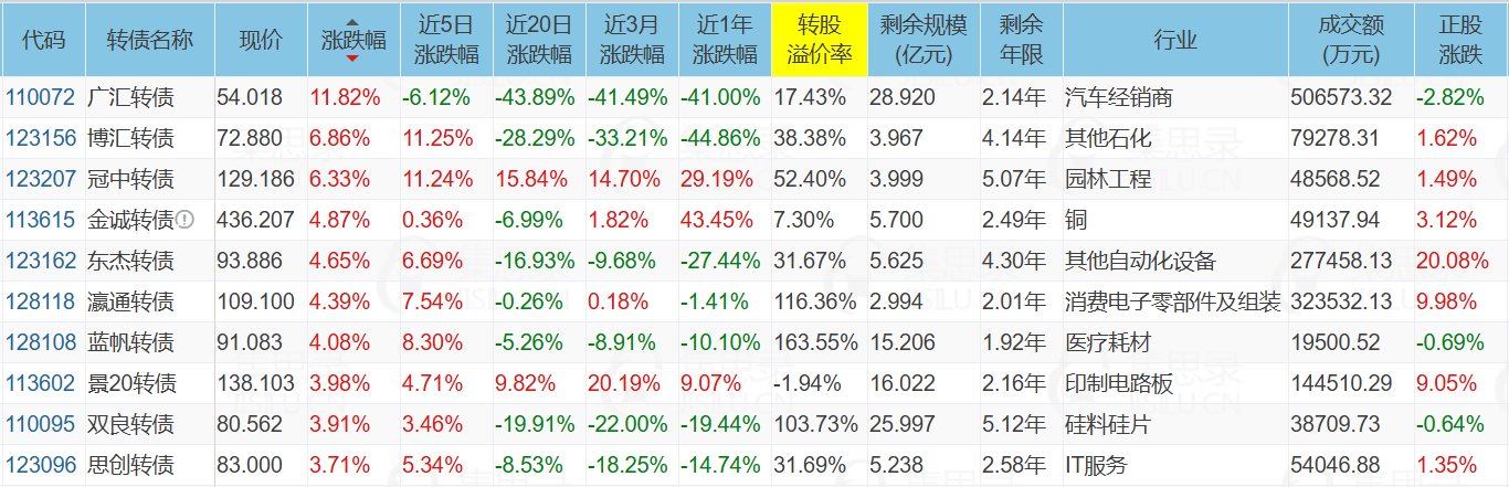 代表债:中辰转债、迪贝转债、通光转债