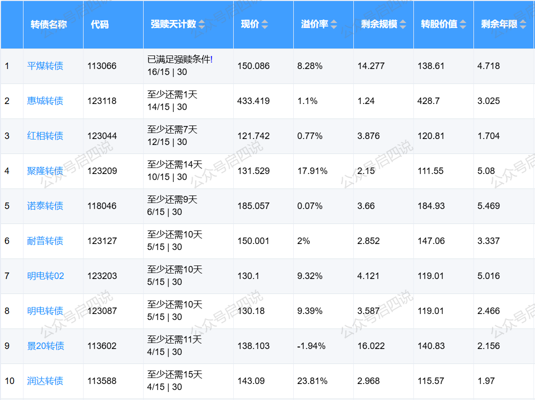 下面这些转债,要注意强赎杀溢价风险,尤其是溢价率在5%以上的。