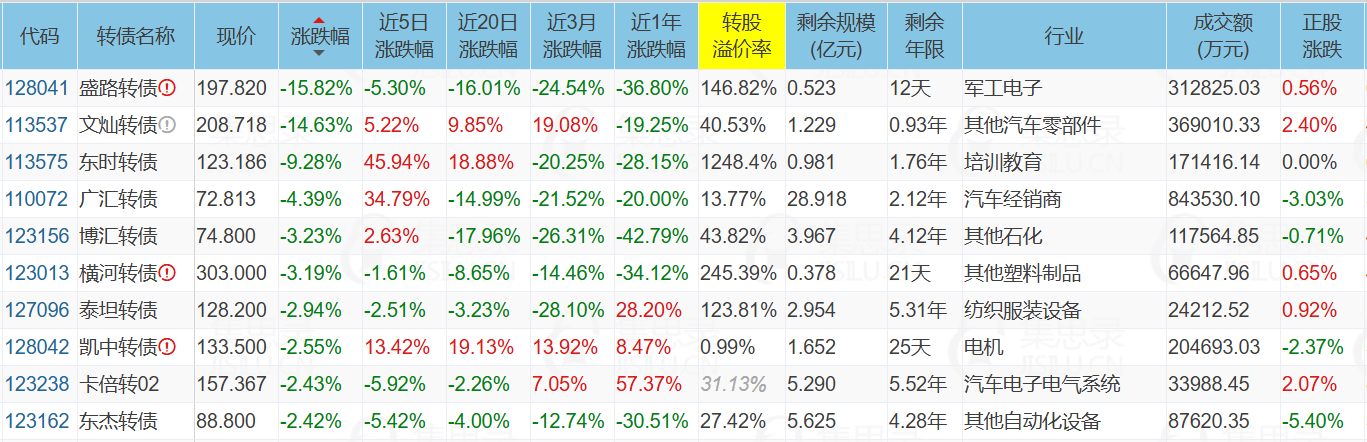 昨天文章里提到的盛路转债、横河转债势必要暴跌,今天两只果然都上了跌幅榜,不过现在跌幅还远远不够,下周下跌空间更大,两只转债到期赎回价都是110元。