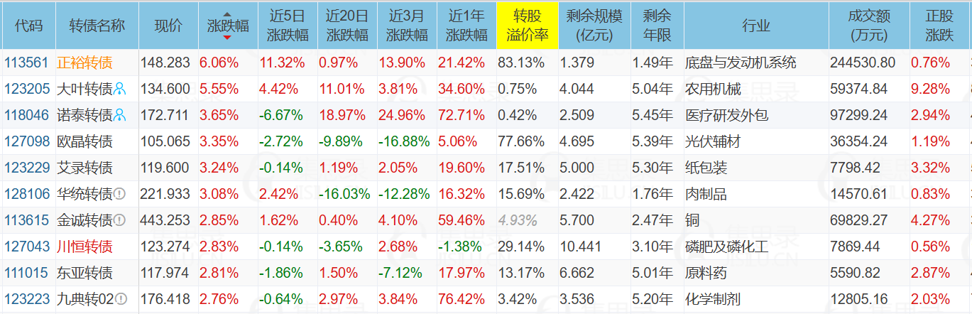 代表债:华海转债、诺泰转债、东亚转债、奇正转债