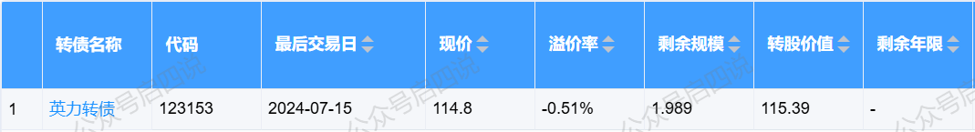 1、山鹰转债,鹰19转债,公告了下修结果,新转股价2.32元/股,原转股价值62.03元,新转股价值63.36元,未下修到底。