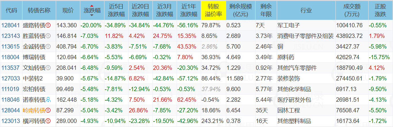 2、跌幅榜前十