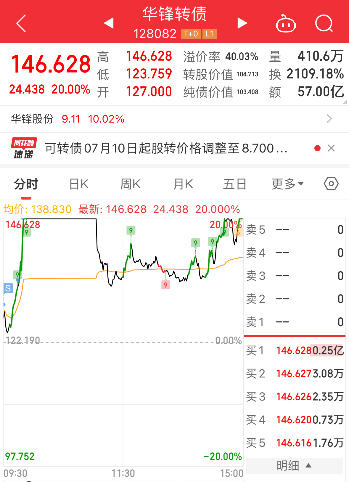 1、吃到了龙一华锋转债,分别在5%、10%、20%的位置止盈了。