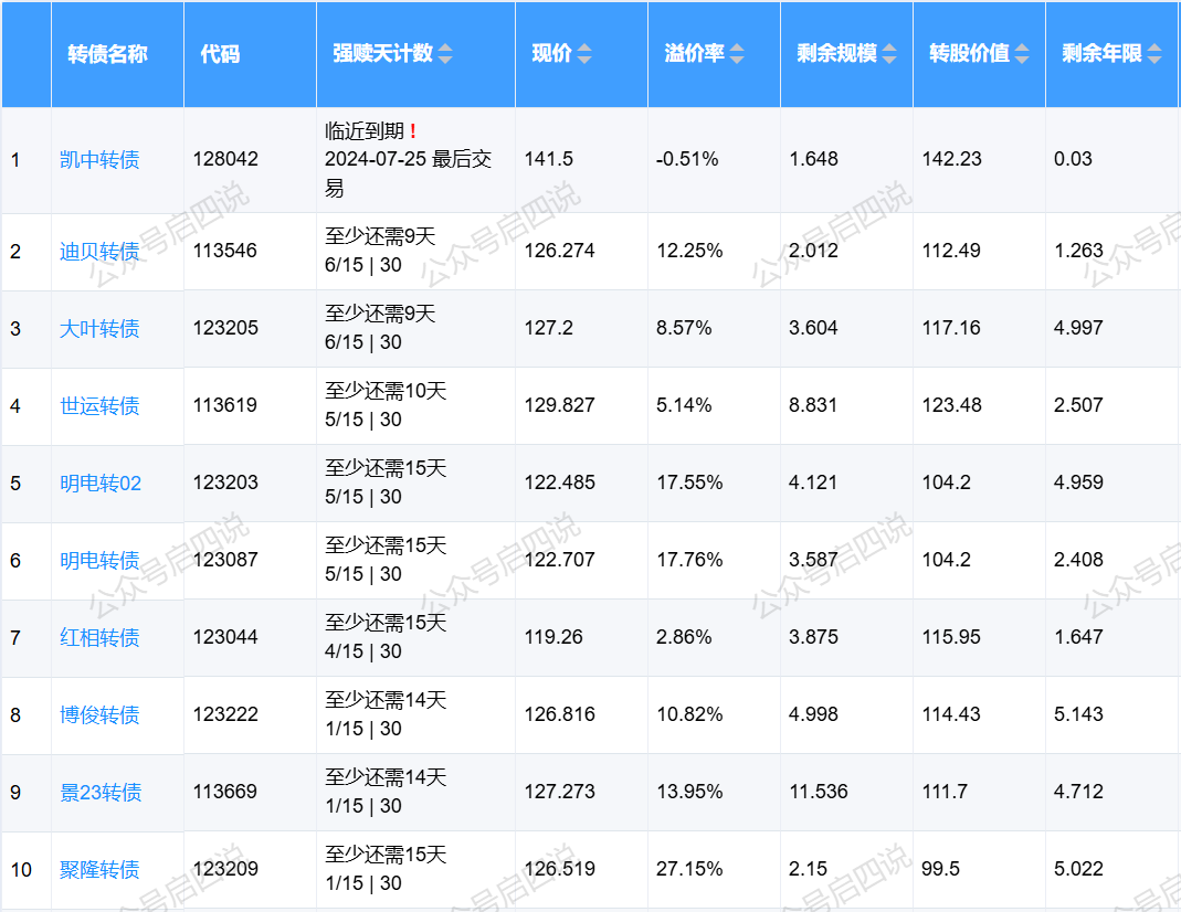 下面这些转债,要注意强赎杀溢价风险,尤其是溢价率在5%以上的。