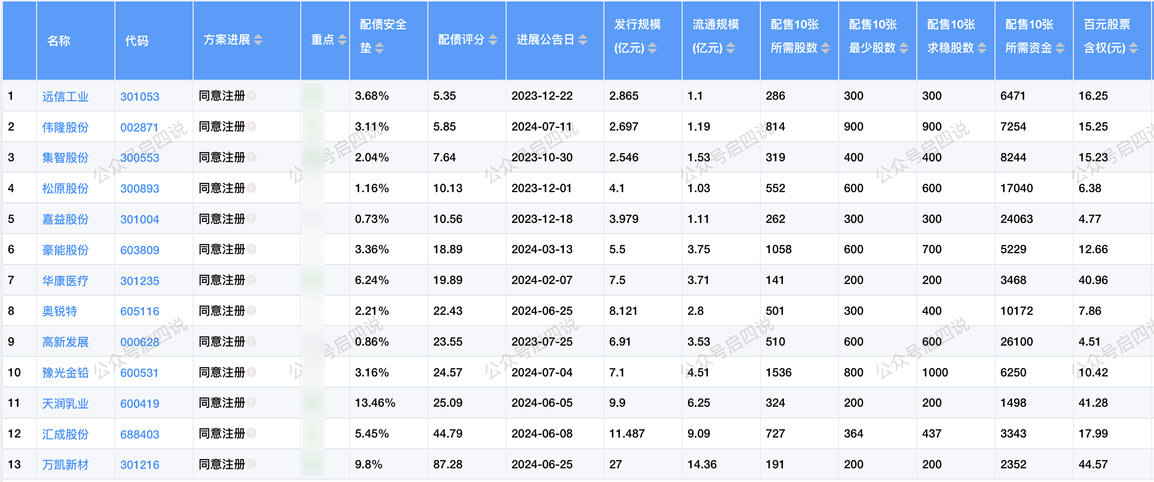 目前还有13只配债股已经同意注册,在等待发行中。