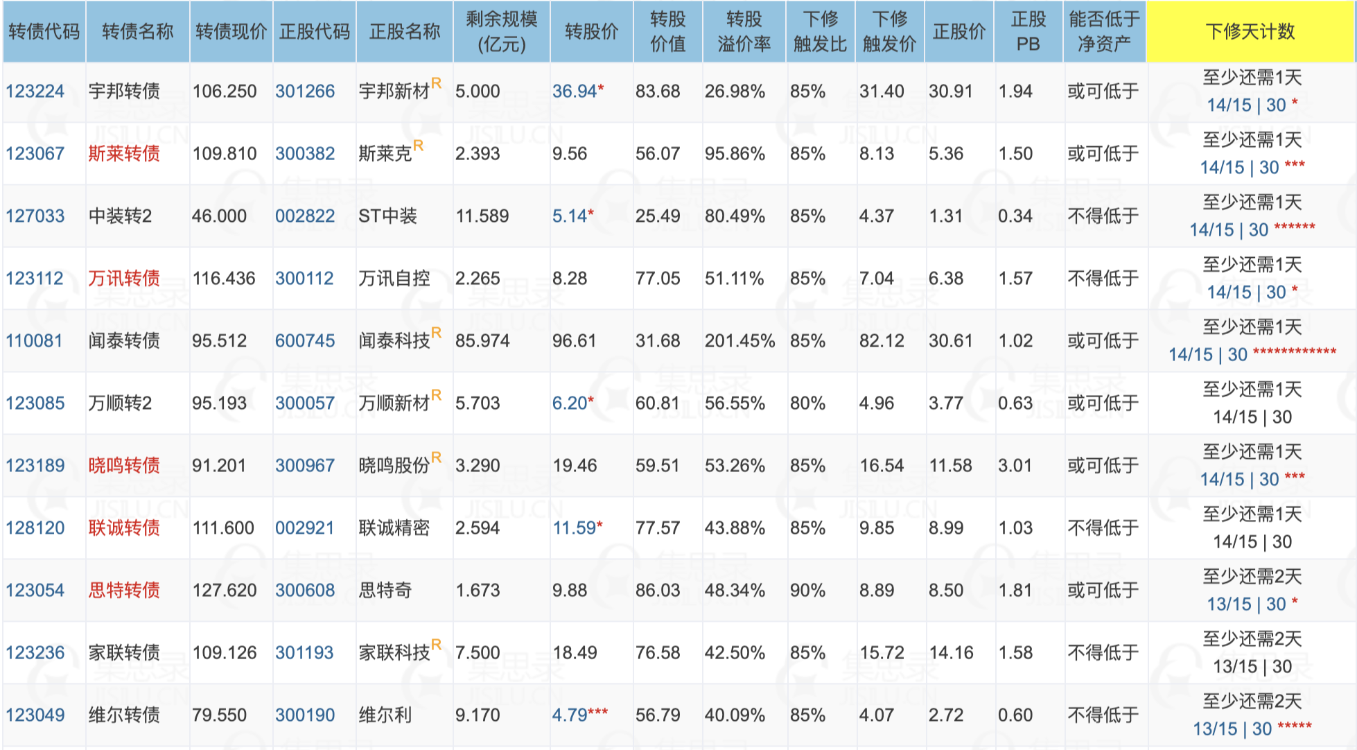 3、明后两天,将有11只转债满足下修条件,个人认为宇邦转债、斯莱转债、中装转2、万顺转2、联诚转债、家联转债、维尔转债的下修动机较强。