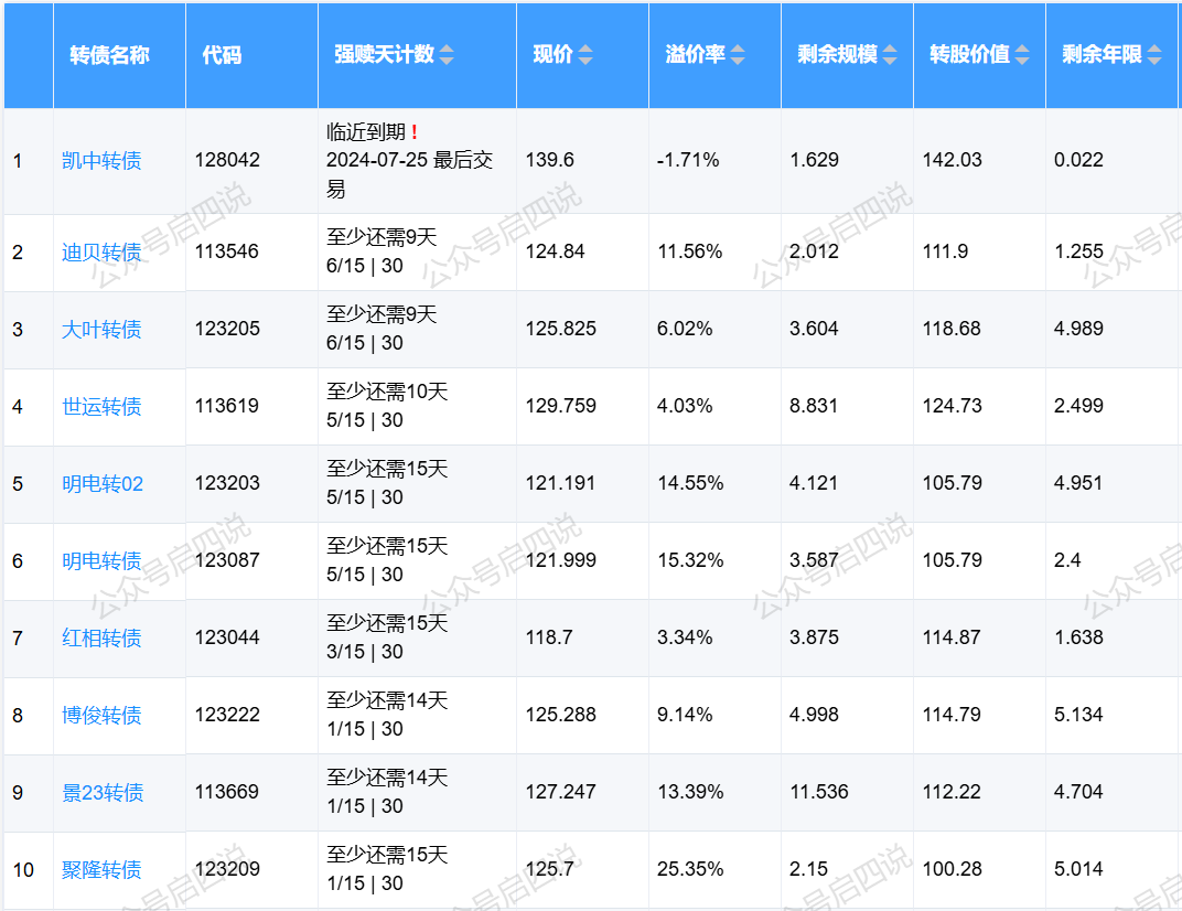 下面这些转债,要注意强赎杀溢价风险,尤其是溢价率在5%以上的。