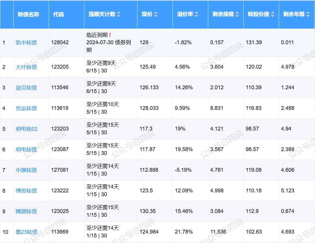 下面这些转债,要注意强赎杀溢价风险,尤其是溢价率在5%以上的。