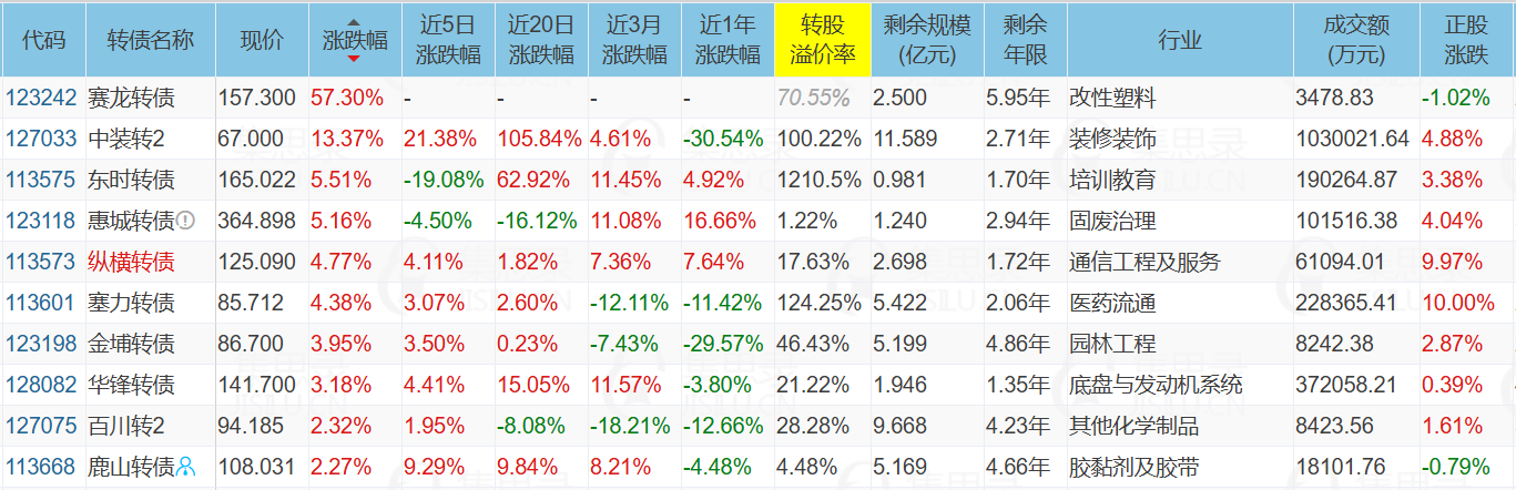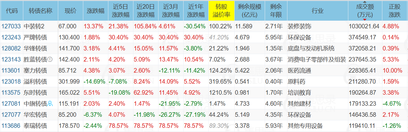 伟24转债现在距离转股期还有不到2个月,炒作热度在持续下降,泰瑞转债和赛龙转债有望接力妖债大旗。