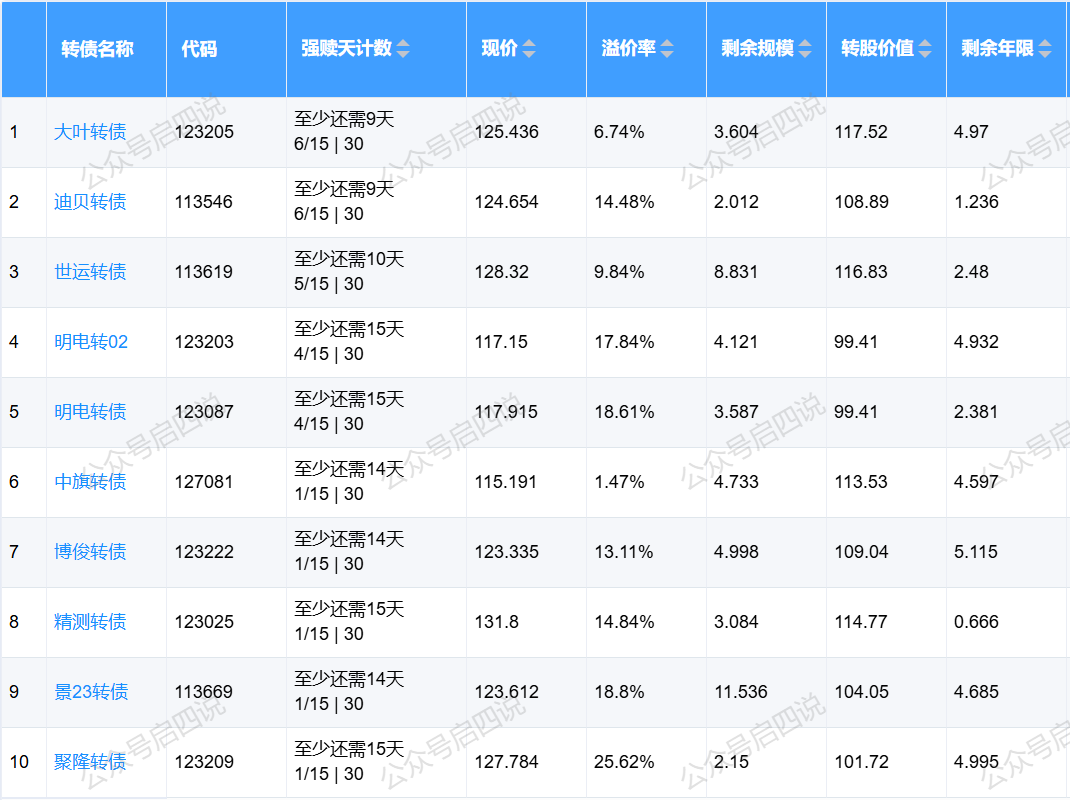 下面这些转债,要注意强赎杀溢价风险,尤其是溢价率在5%以上的。