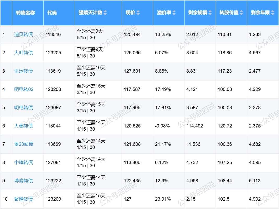 下面这些转债,要注意强赎杀溢价风险,尤其是溢价率在5%以上的。