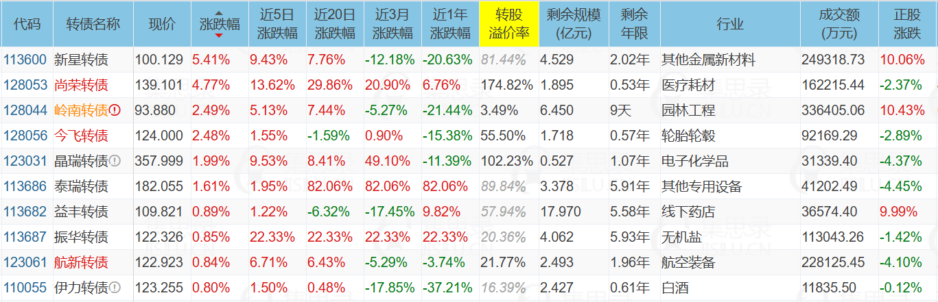 1、涨幅榜前十