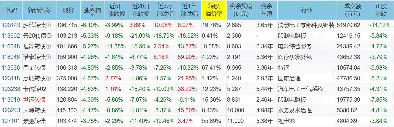 2、跌幅榜前十